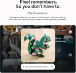 • Get more info quickly with Gemini, your built-in AI assistant[3]; instead of typing, use Gemini Live; it follows along even if you change the topic or switch the question[31]; and Pixel Screenshots helps you save things you’ll want to remember later