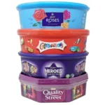 CHOCOLATE TUBS Variety tubs of chocolates with flavours and types to suit everyone! Enjoy all of your favourite chocolates in this bundle pack of Christmas chocolate tubs GREAT FOR SHARING This chocolate tubs 4 pack with tubs and Terrys Chocolate Orange Segsations is perfect for sharing amongst friends and family! SEASONAL CHOCOLATE perfect selection box Christmas chocolate Christmas gift with variety. Great for Christmas, Halloween chocolates and more. Christmas chocolates and Christmas selection box CHOCOLATE GIFTS Perfect chocolate tub gift chocolates for Christmas hampers, baskets, gift bags and more CONTAINS 1 x Roses chocolate, 1 x Celebrations, 1 x Heroes Chocolates, 1 x Quality Street & 1 x Terry’s Chocolate Orange Segsations
