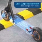 • Comfortable Riding Experience, Let You Enjoy Every Trip – MAX Pro electric scooter adopts front and rear wheel suspension system and 11-inch pneumatic tires, which means you can enjoy a smoother and more comfortable riding experience, even on rough roads the same!